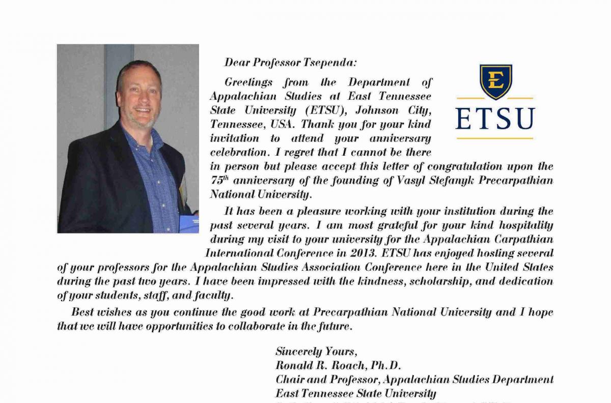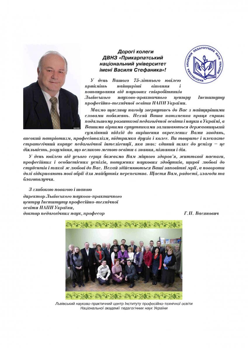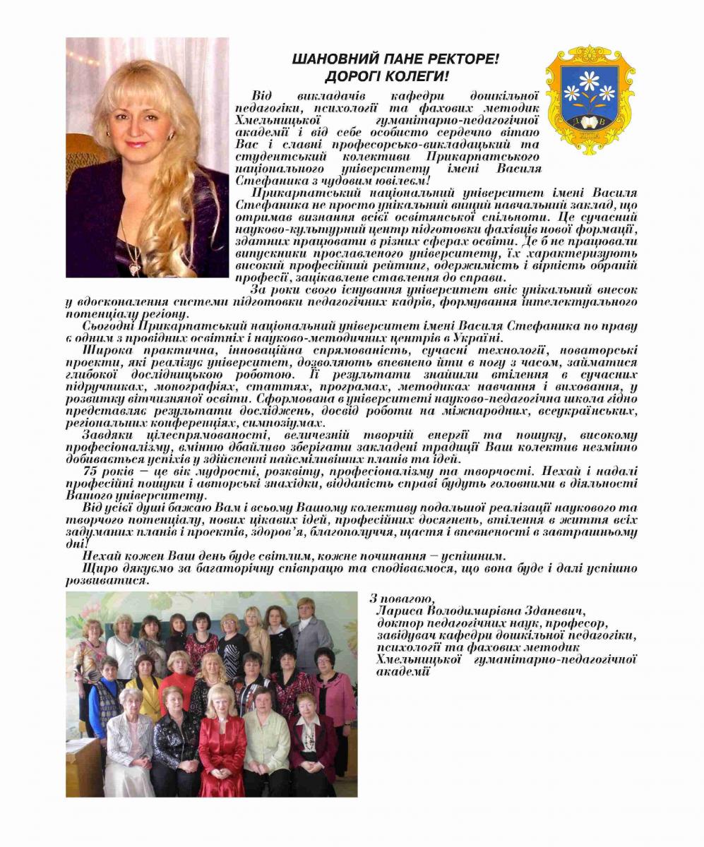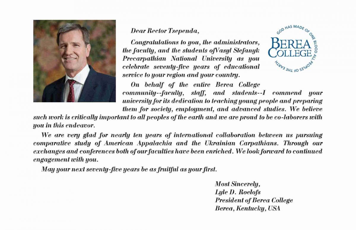 На адресу журналу «Гірська школа Українських Карпат» надійшли вітання з нагоди 75-річчя ДВНЗ «Прикарпатський національний університет імені Василя Стефаника»