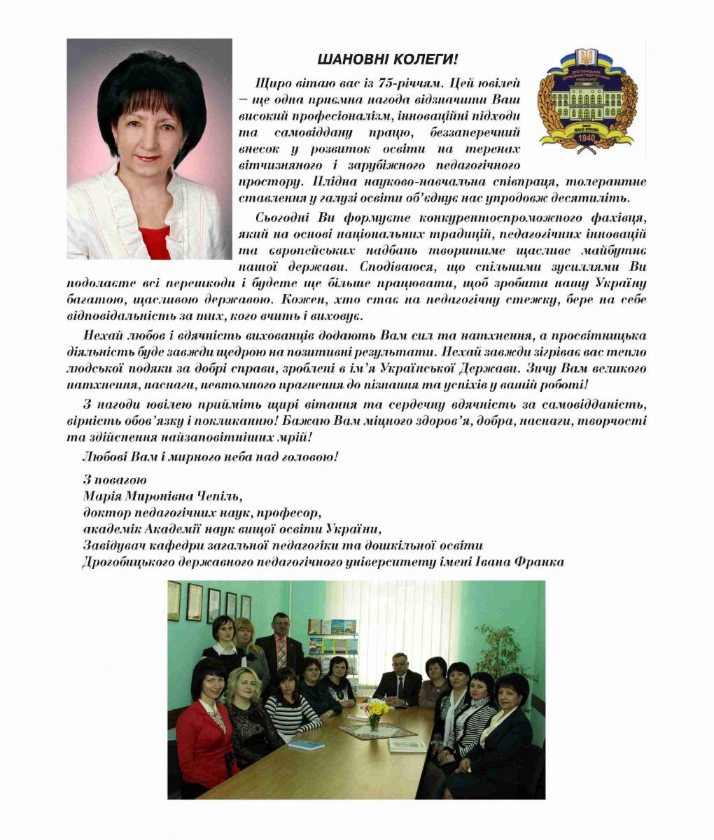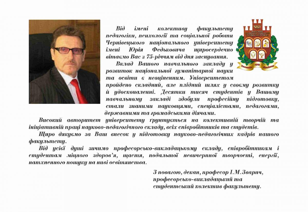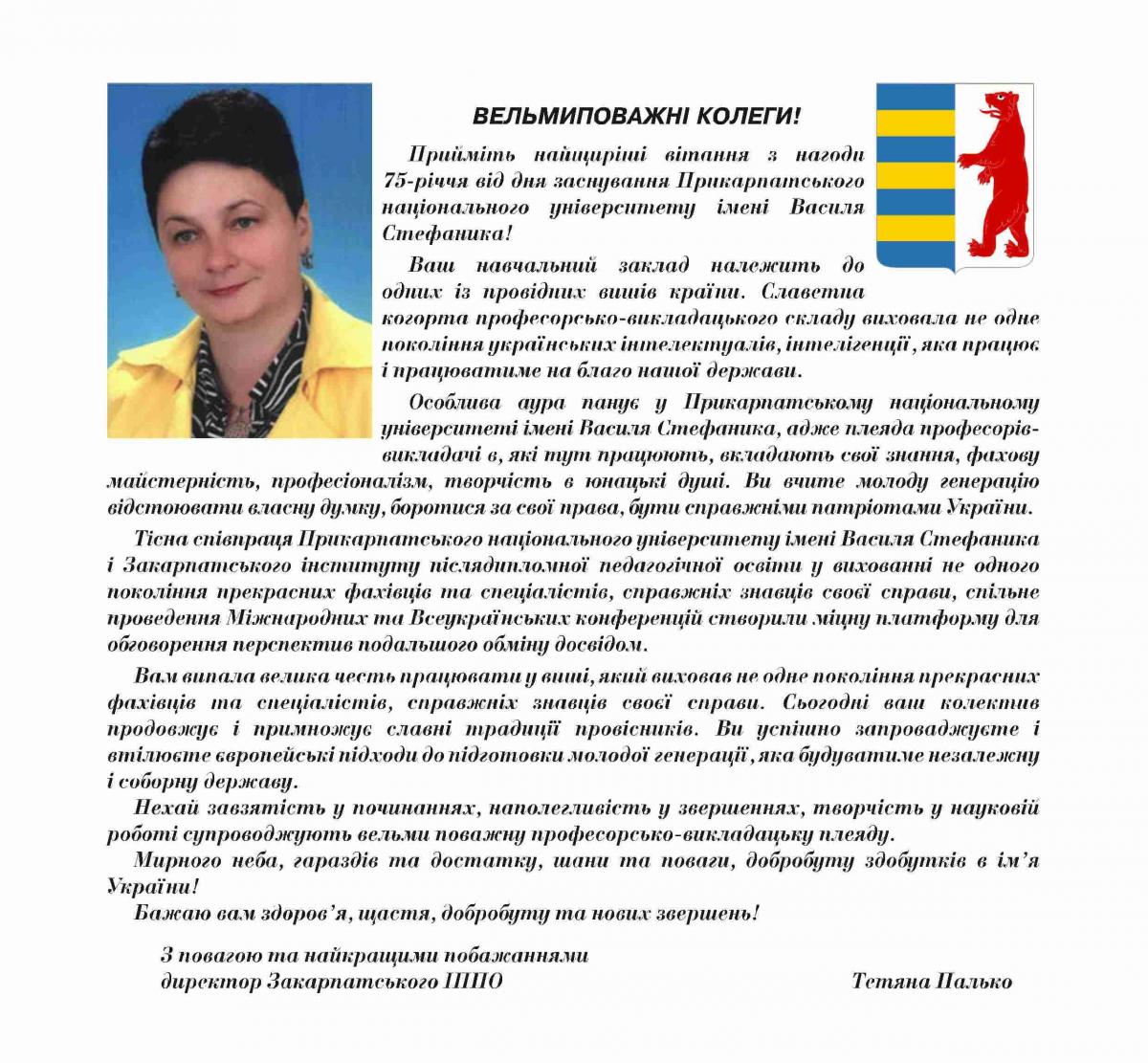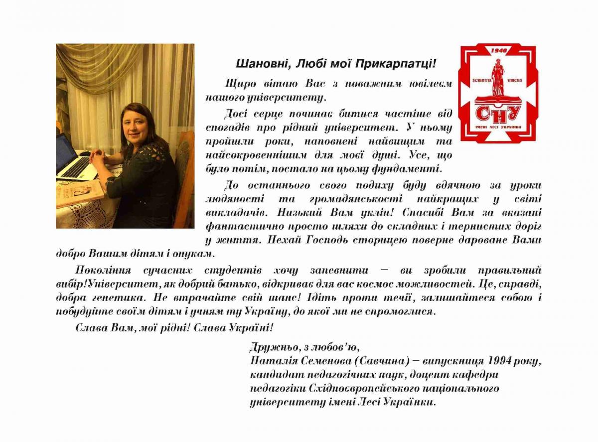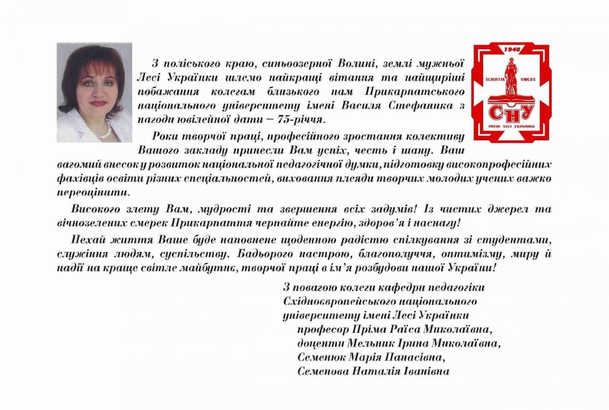 На адресу журналу «Гірська школа Українських Карпат» надійшли вітання з нагоди 75-річчя ДВНЗ «Прикарпатський національний університет імені Василя Стефаника»